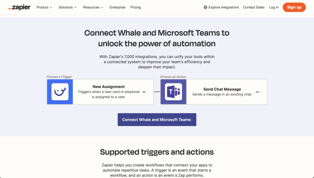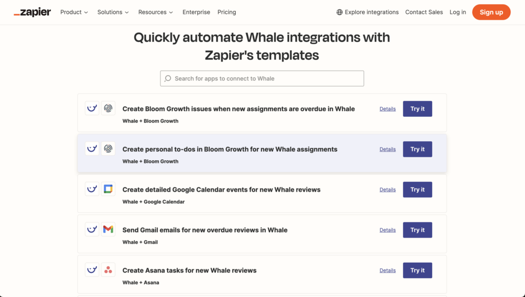 - Custom Workflows: Design and implement workflows tailored to your specific needs. Whether it’s automating repetitive tasks or creating complex multi-step processes, Zapier allows you to connect Whale with a multitude of other applications effortlessly.