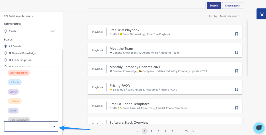 Use the search function to filter content by tags, narrowing down results to the most relevant playbooks or cards.