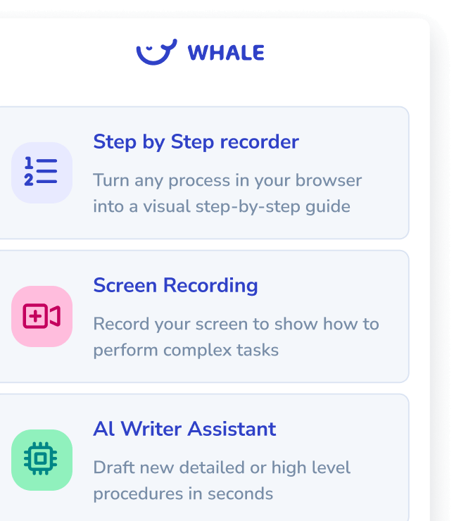 Download the Whale step-recorder and auto-generate step-by-step guides, just by clicking record.